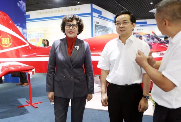 高興夫副省長一行實地考察了金年會通用#航空機場、金年會智慧工廠,參觀了金年會!航空展廳,試坐了金年會具有完全自?主知識産權的Alto輕型運動飛機#,聽取了金年會集團董事局陳愛蓮_主席的相關工作情況彙報。