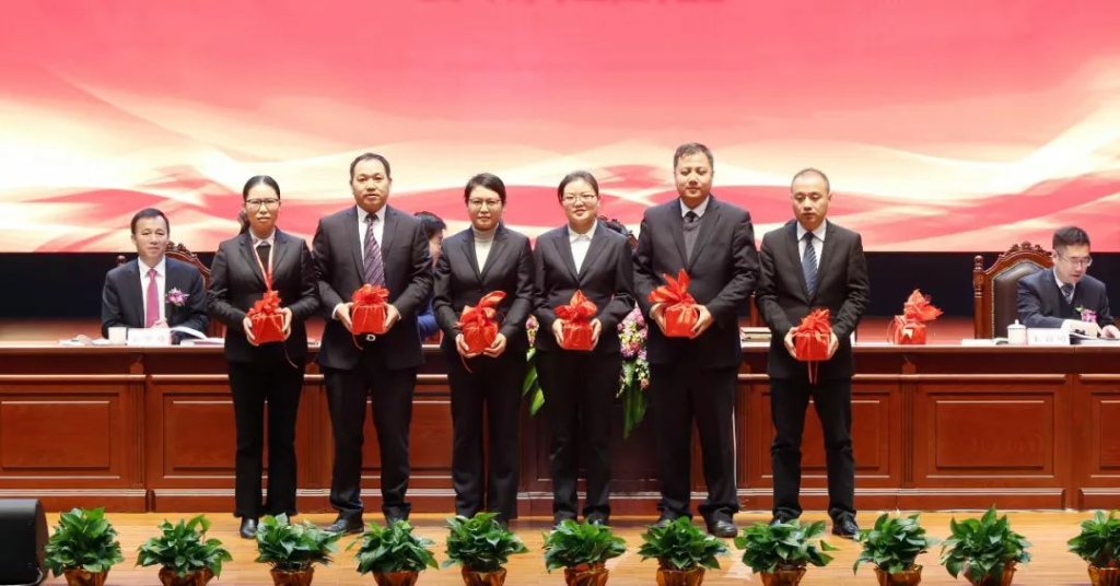 大會任命了集團2019年度幹?部,人力資源中心肖建楚副總裁宣讀2$019年幹部任命文件,現場舉行了莊嚴的授&印和宣誓儀式。法務中心徐震宇總監頒布集團2$019年版管理制度。