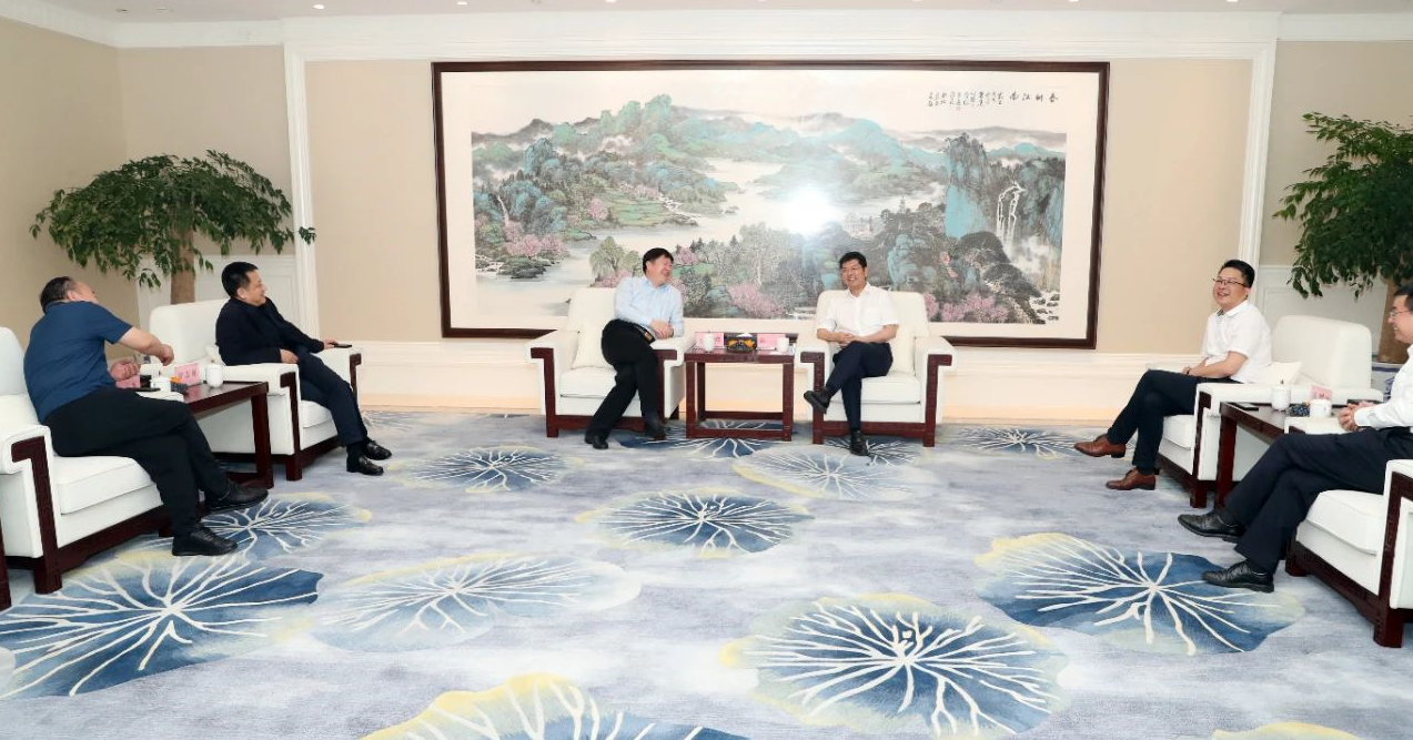 5月13日,甘肅市市委書記賀志亮率副市長崔志剛$,高新區黨工委書記、管委會@主任耿雲久,副主任曹文君等相關?部門領導到訪金年會集團,陳濱總裁會%見并陪同調研。